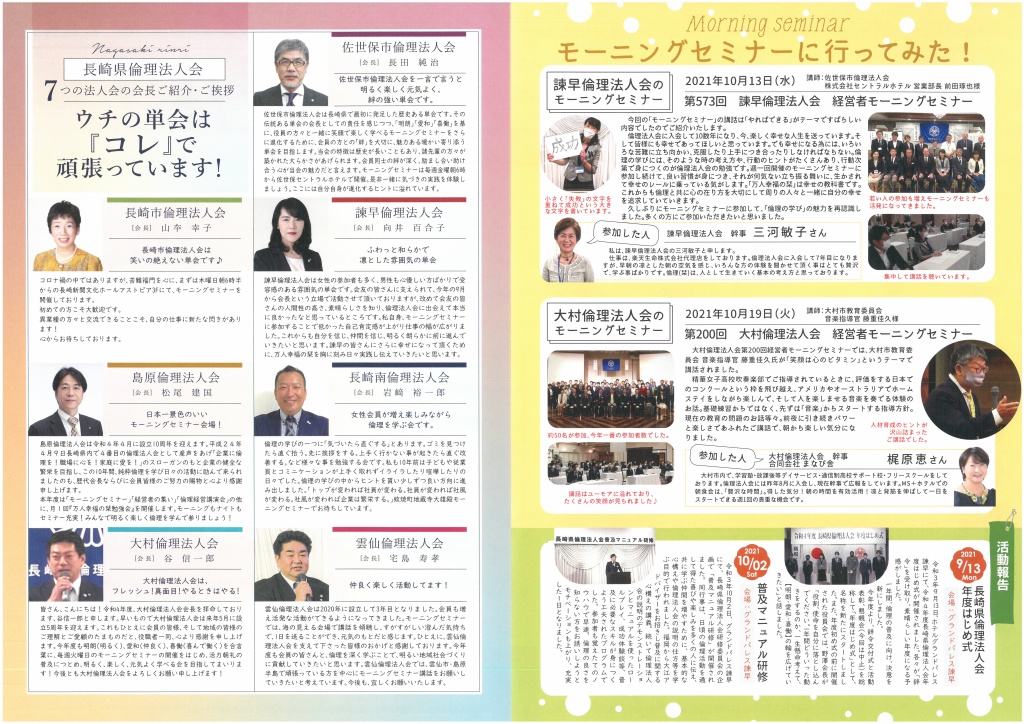 一般社団法人倫理研究所 長崎県倫理法人会は倫理経営の実践と普及を目的とし、企業経営者を対象に「経営者モーニングセミナー」などを開催しております。